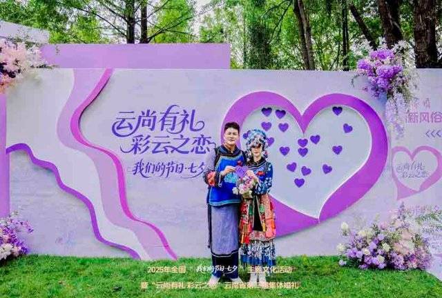 本次活动由中宣部文明实践局、民政部社会事务司、文化和旅游部非物质文化遗产司、共青团中央宣传部、全国妇联宣传部、中国文联文艺志愿服务中心主办。不仅以集体婚礼、集体颁证等形式为七夕节增添浪漫,更以创新实践推动移风易俗与经济发展融合。一方面倡导婚事新办简办,引导社会高额彩礼、大操大办等陈规陋习。另一方面,深度打造“全国通办+旅居+民俗体验”的特色“甜蜜经济”新场景,带动旅游、旅拍、民族服饰体验等消费,为云南文旅产业注入消费新动能。