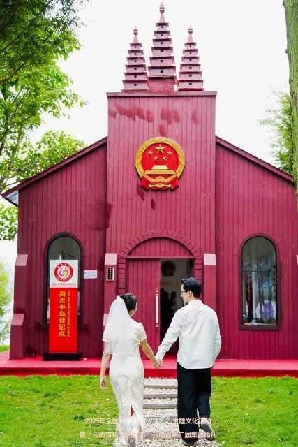 除主会场外,全省各地分会场活动同样亮点纷呈。在昆明五华区南屏街,新人们在无人机送婚书的浪漫场景中完成仪式;在红河建水稻田公园婚姻登记服务点,新人乘“百年小火车”参与“幸福接力”;在香格里拉石卡雪山下,新人以雪山为盟、草甸为证,用简约而隆重的仪式,践行“重感情轻形式”的婚恋观,诠释新时代婚恋新风尚。各地民政局依托当地特色场景与文化,举办了集体颁证、集体宣誓、传统婚俗体验等特色活动,倡导文明婚俗礼仪,为新人传递忠贞爱情、家庭美满的价值理念,传承弘扬中华优秀传统文化。